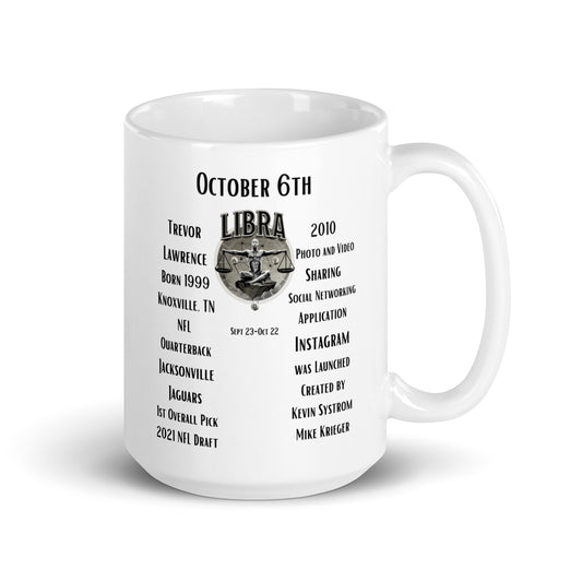 On This Day: Birthday Series - October 06th - (A) Trevor Lawrence & Instagram - White glossy mug