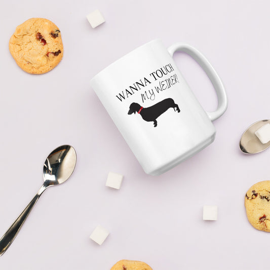 Man's Best Friend #03 "WANNA TOUCH MY WEINER" White glossy mug