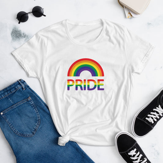 LGBTQ+ #01 Rainbow over "Pride" Women's Fashion Fit T-Shirt