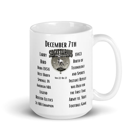 On This Day: Birthday Series - December 07th - (A) - Larry Bird & Instant Replay - White glossy mug