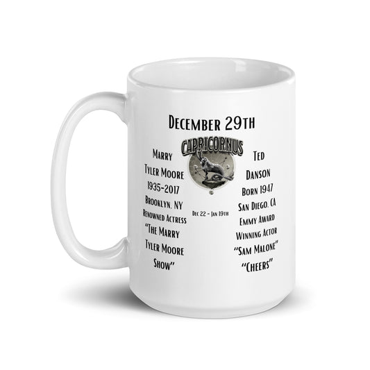 On This Day: Birthday Series - December 29th - (B) Mary Tyler Moore & Ted Danson - White glossy mug