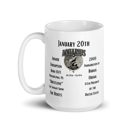 On This Day: Birthday Series - January 20th - (B) "Questlove" & Barack Obama's Inauguration - White glossy mug