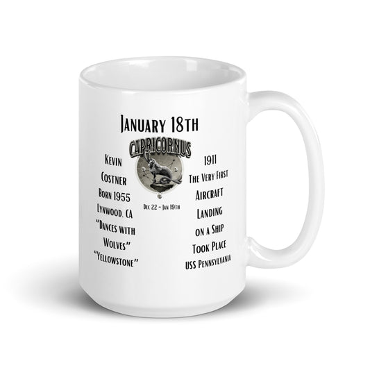 On This Day: Birthday Series - January 18th - (A) Kevin Costner - USS Pennsylvania - White glossy mug