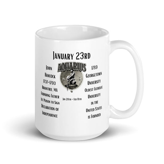 On This Day: Birthday Series - January 23rd - (A) John Hancock & Georgetown University - White glossy mug