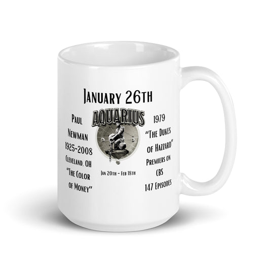 On This Day: Birthday Series - January 26th - (A) Paul Newman & "The Dukes of Hazzard" - White glossy mug