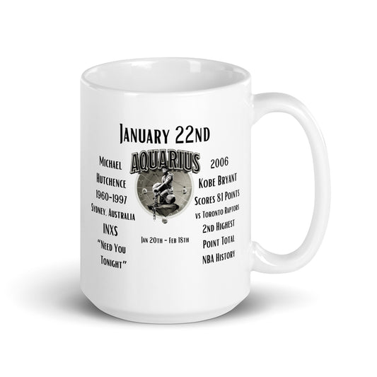 On This Day: Birthday Series - January 22nd - (A) Michael Hutchence & Kobe Bryant - White glossy mug