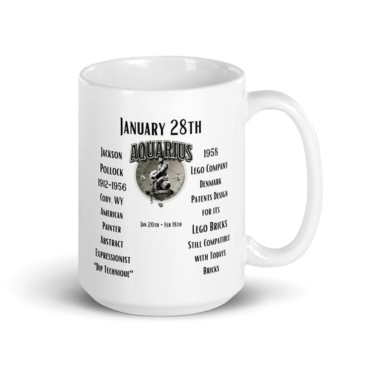 On This Day: Birthday Series - January 28th - (A) Jackson Pollock & Legos - White glossy mug