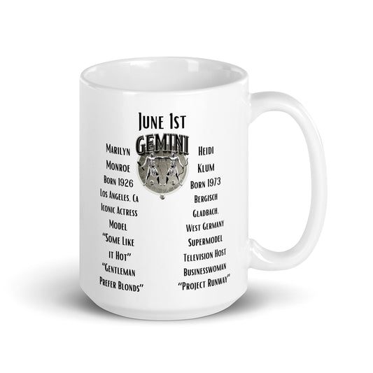 On This Day: Birthday Series - June 01st - (A) Marilyn Monroe & Heidi Klum - White glossy mug