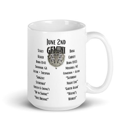 On This Day: Birthday Series - June 02nd - (A) Stacy Keach & Dana Carvey - White glossy mug