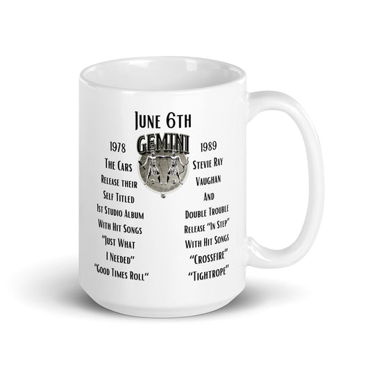 On This Day: Birthday Series - June 06th - (A) The Cars & Stevie Ray Vaughan and Double Trouble - White glossy mug