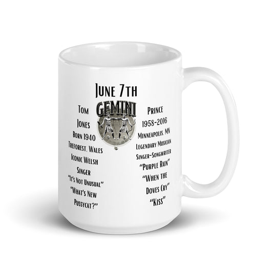 On This Day: Birthday Series - June 07th - (A) Tom Jones & Prince - White glossy mug