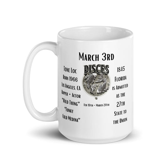 On This Day: Birthday Series - March 03rd - (B) Tone Loc & Florida - White glossy mug