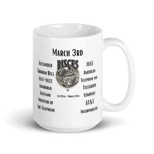 On This Day: Birthday Series - March 03rd - (A) Alexander Graham Bell & AT&T - White glossy mug