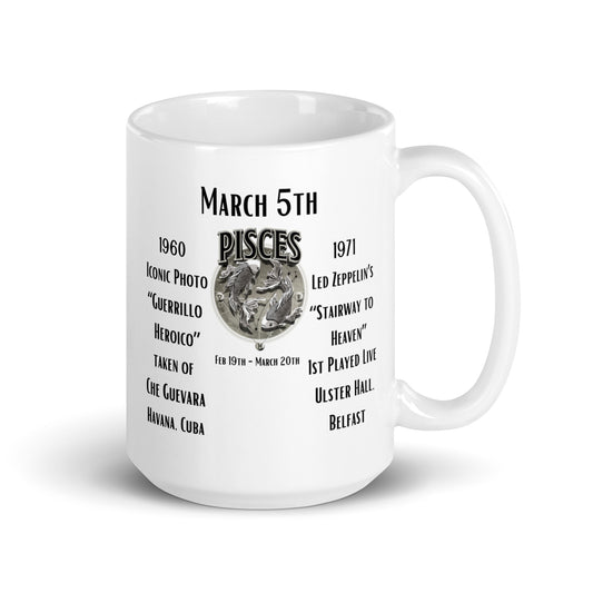 On This Day: Birthday Series - March 05th - (A) "Guerrillo Heroico" & "Stairway to Heaven" - White glossy mug