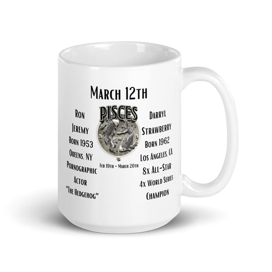 On This Day: Birthday Series - March 12th - (A) Ron Jeremy & Darryl Strawberry - White glossy mug