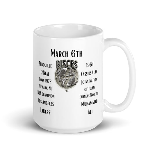 On This Day: Birthday Series - March 06th - (A) Shaquille O'Neal & Muhammad Ali - White glossy mug