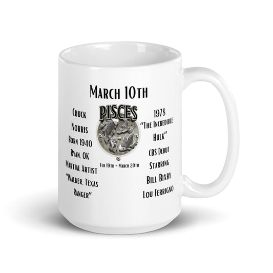 On This Day: Birthday Series - March 10th - (A) Chuck Norris & "The Incredible Hulk" White glossy mug