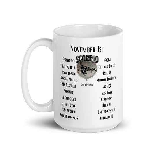 On This Day: Birthday Series - November 01st - (B) Fernando Valenzuela & Michael Jordan - White glossy mug