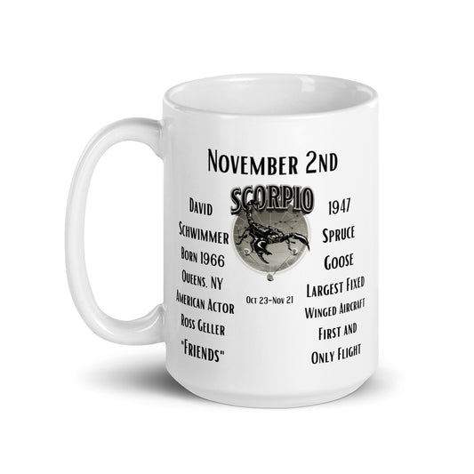 On This Day: Birthday Series - November 02nd - (B) David Schwimmer & The Spruce Goose - White glossy mug