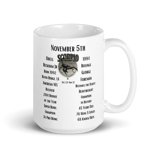 On This Day: Birthday Series - November 05th - (C) Odell Beckham Jr. & George Foreman - White glossy mug
