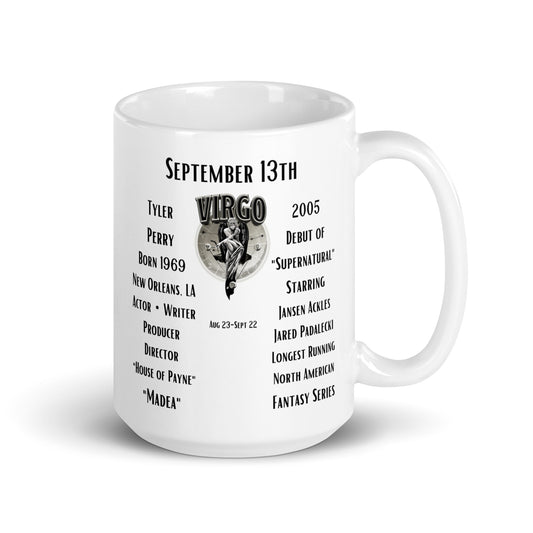 On This Day: Birthday Series - September 13th - (A) Tyler Perry & "Supernatural" - White glossy mug