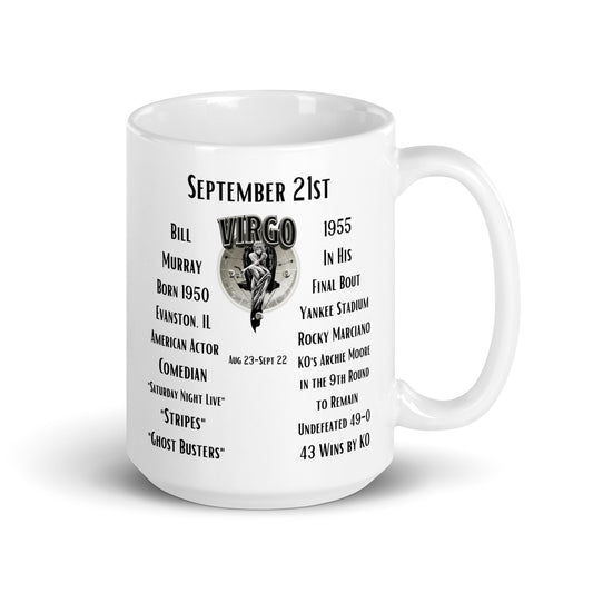 On This Day: Birthday Series - September 21st - (A) Bill Murray & Rocky Marciano - White glossy mug