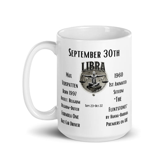On This Day: Birthday Series - September 30th - (B) Max Verstappen & "The Flintstones" - White glossy mug