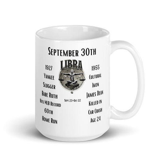 On This Day: Birthday Series - September 30th - (C) Babe Ruth & James Dean - White glossy mug