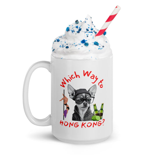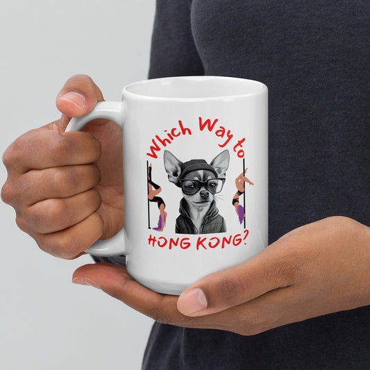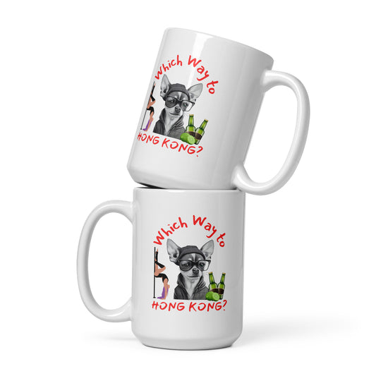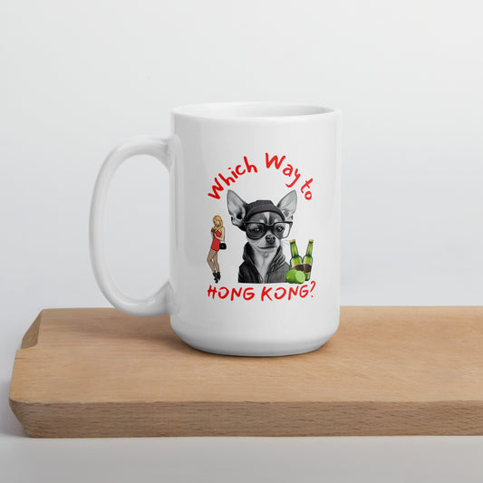 Rude, Crude, and Funny #02 "Which Way to HONG KONG" White glossy mug