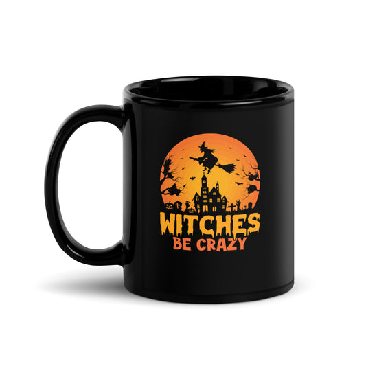 Halloween #12 "WITCHES BE CRAZY" Black Glossy Mug
