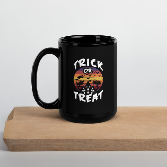 Halloween #08 "TRICK OR TREAT" Black Glossy Mug