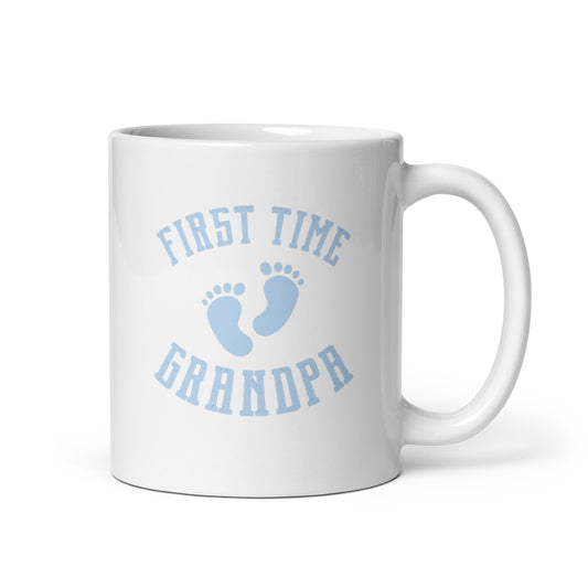 Grandad #01 "First Time Grandpa" (Blue) White glossy mug