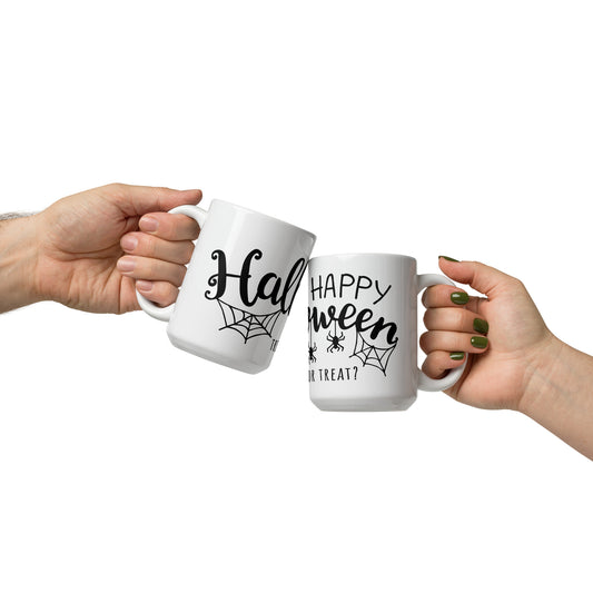 Halloween #01 "Happy Halloween Trick or Treat" w/ Two Spiders Full Wrap White glossy mug