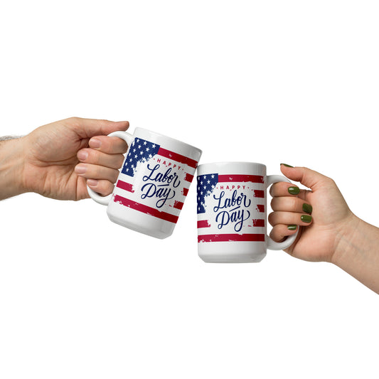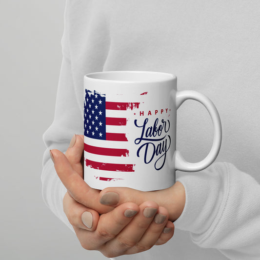 Labor Day #03 "HAPPY LABOR DAY" White glossy mug