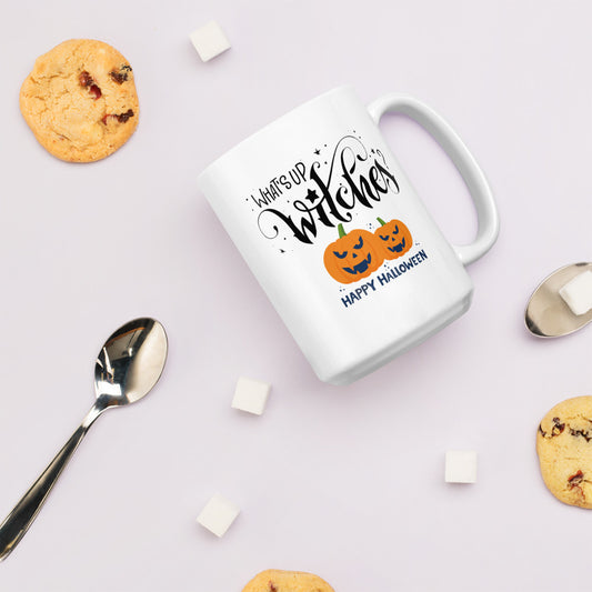 Halloween #17 "What's Up Witches" White glossy mug