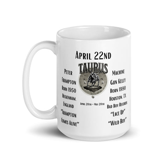 On This Day: Birthday Series - April 22nd - (B) Peter Frampton & Machine Gun Kelly - White glossy mug