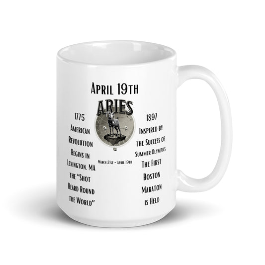 On This Day: Birthday Series - April 19th - (A) American Revolution & 1st Boston Marathon - White glossy mug