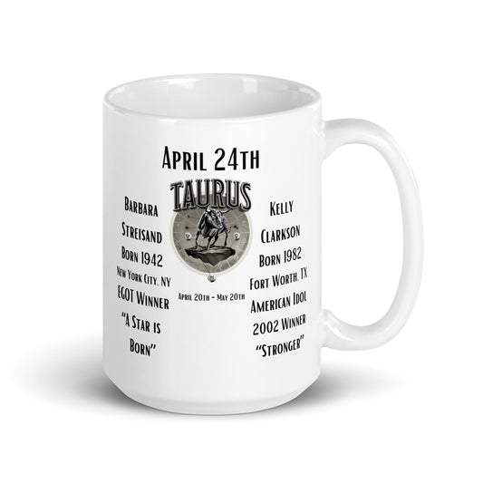 On This Day: Birthday Series - April 24th - (A) Barbara Streisand & Kelly Clarkson - White glossy mug