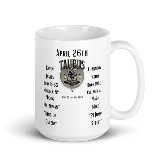 On This Day: Birthday Series - April 26th - (A) Kevin James & Channing Tatum - White glossy mug
