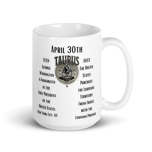 On This Day: Birthday Series - April 30th - (A) George Washington & The Louisiana Purchase - White glossy mug