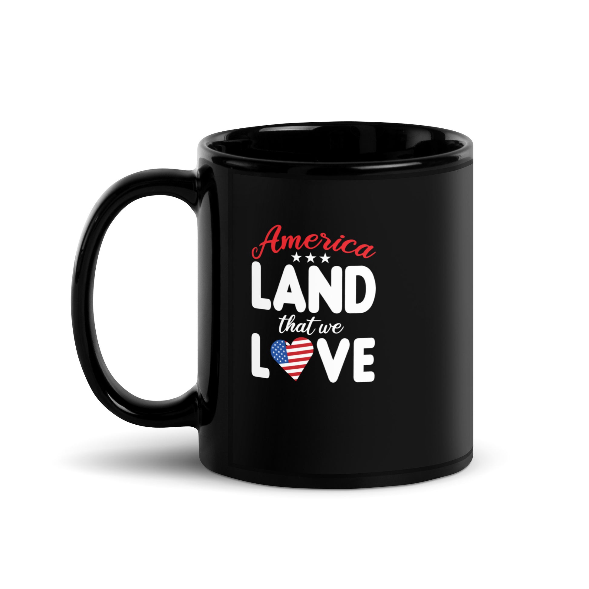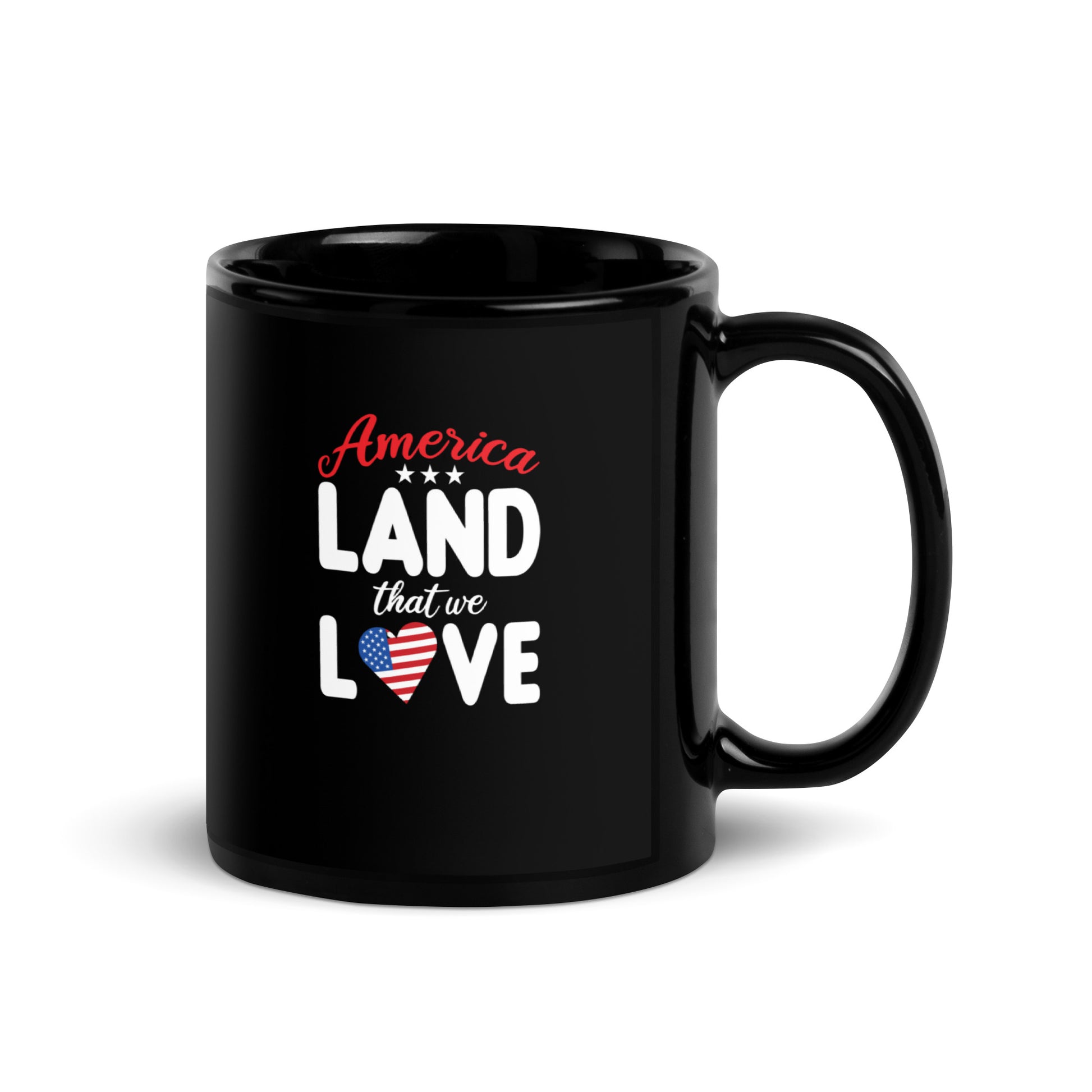 God Bless America #04 "America LAND that we LOVE" Black Glossy Mug