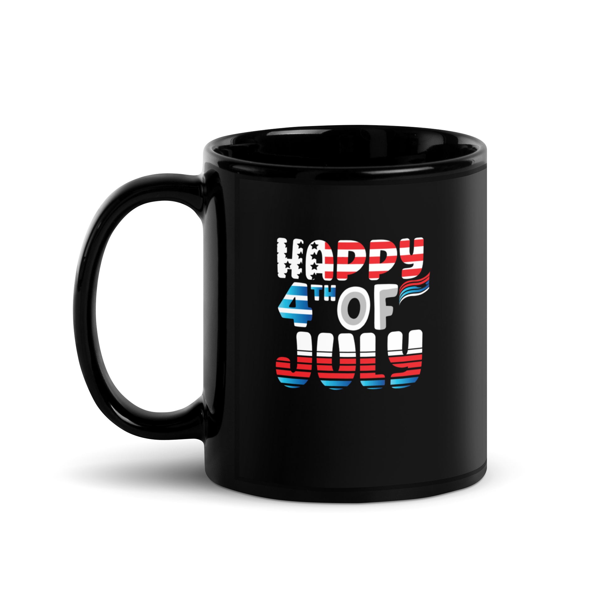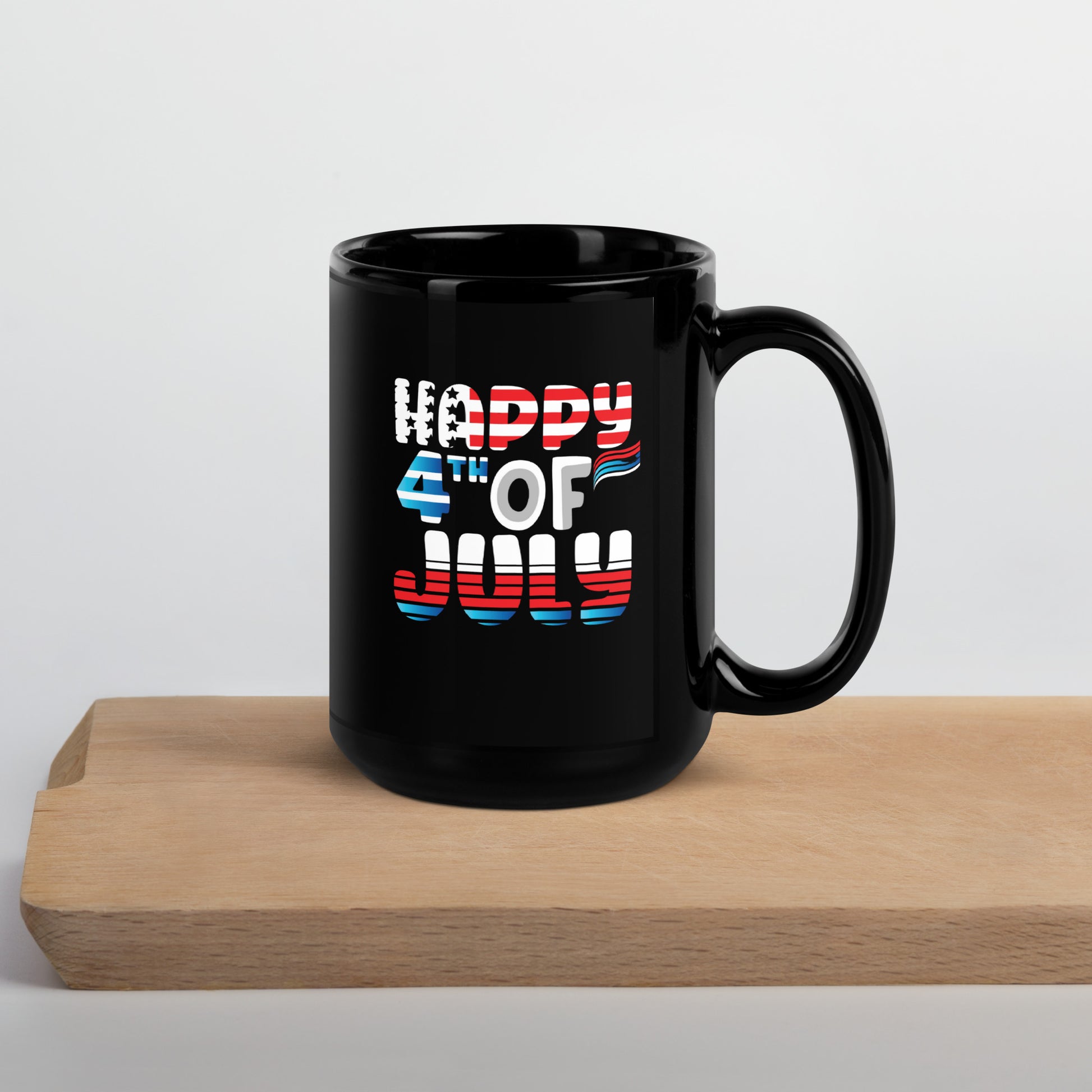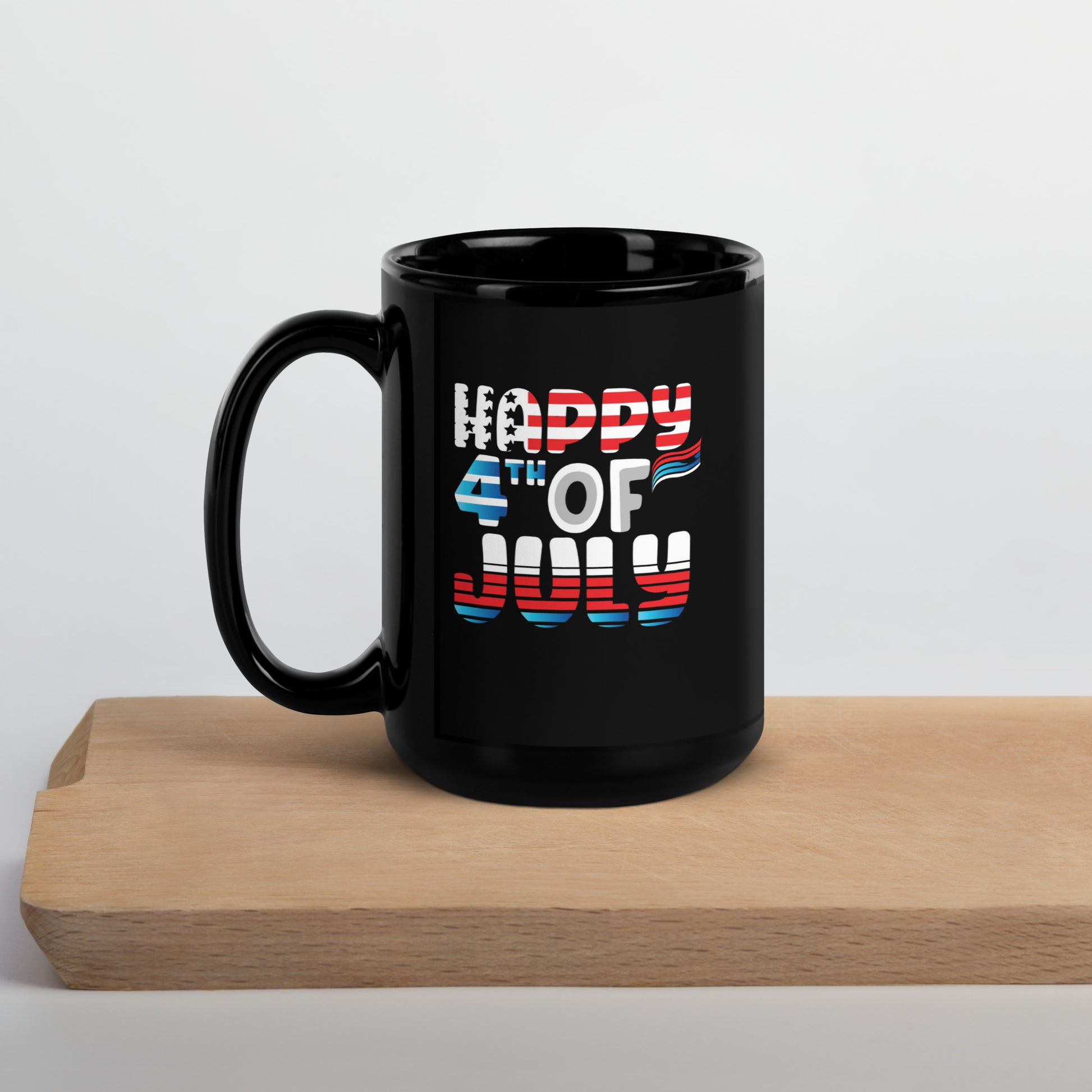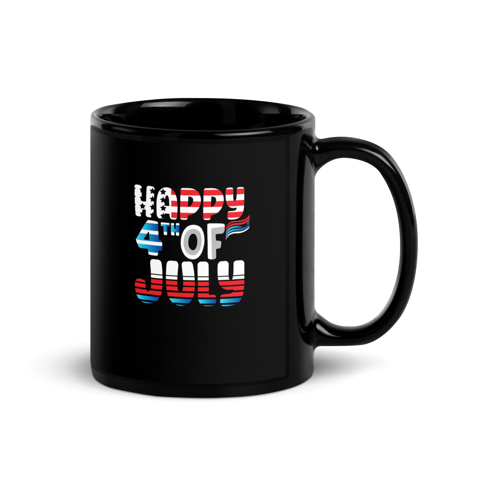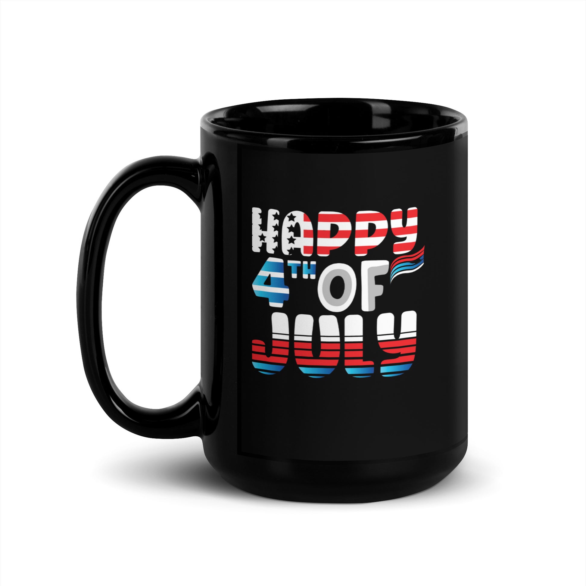 4th of July #14 "HAPPY 4th OF JULY" Black Glossy Mug