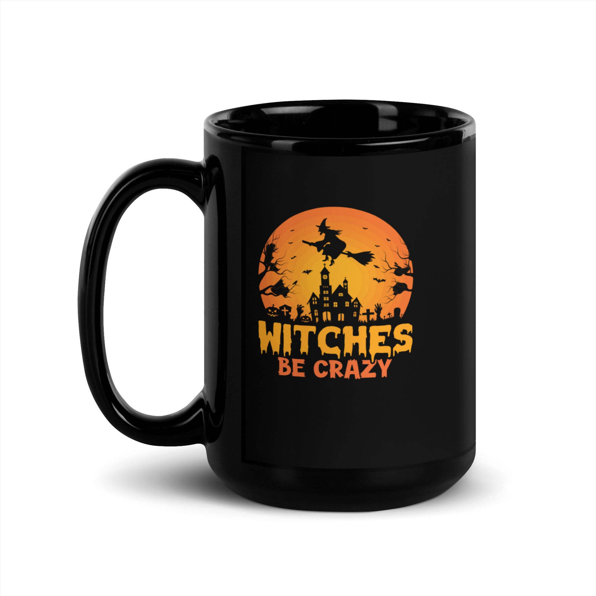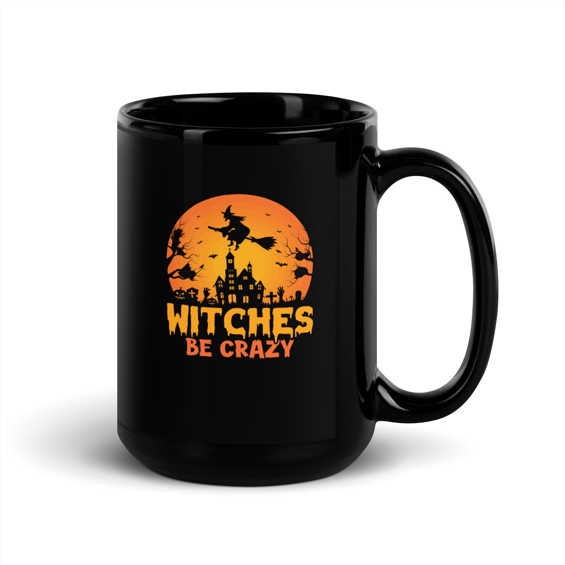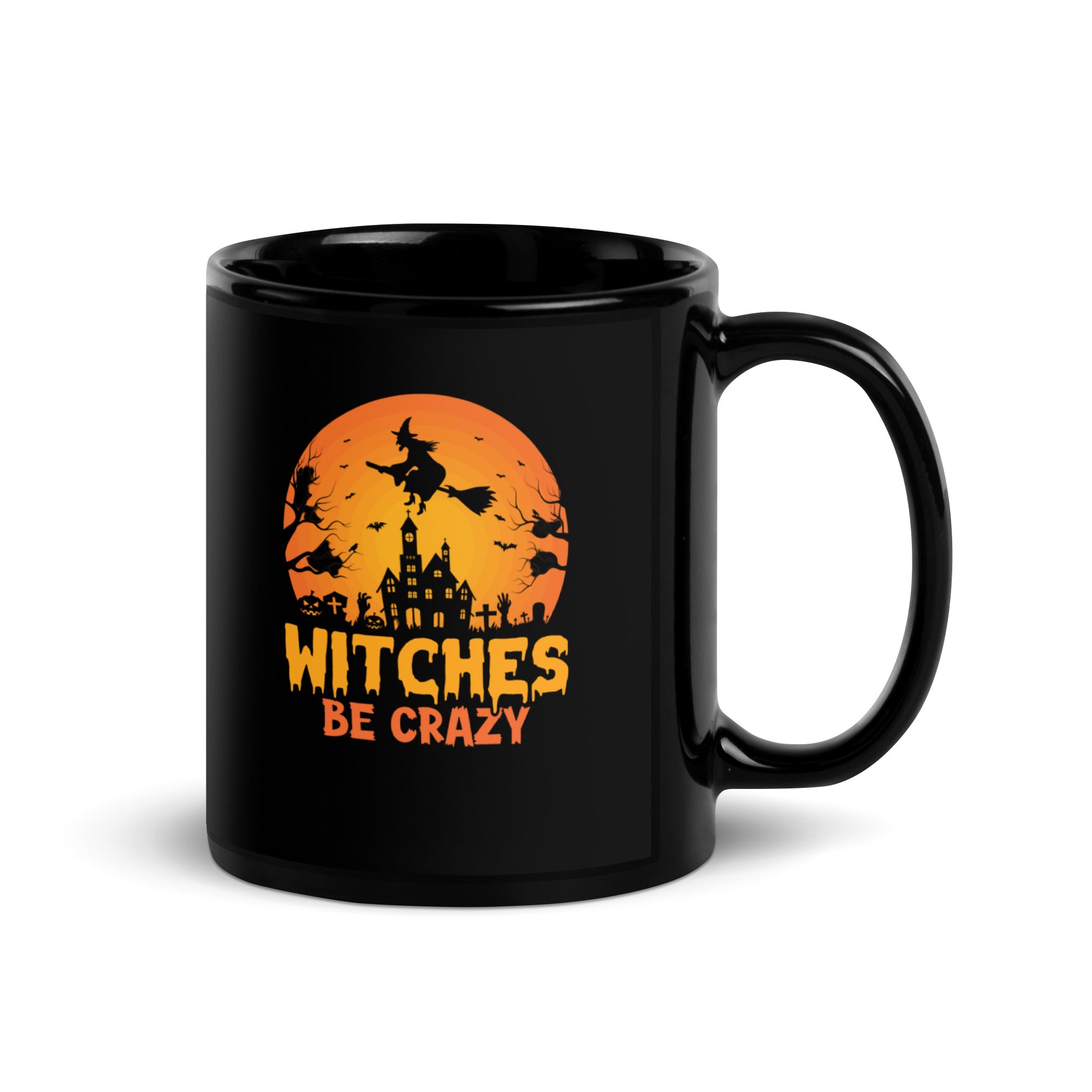 Halloween #12 "WITCHES BE CRAZY" Black Glossy Mug