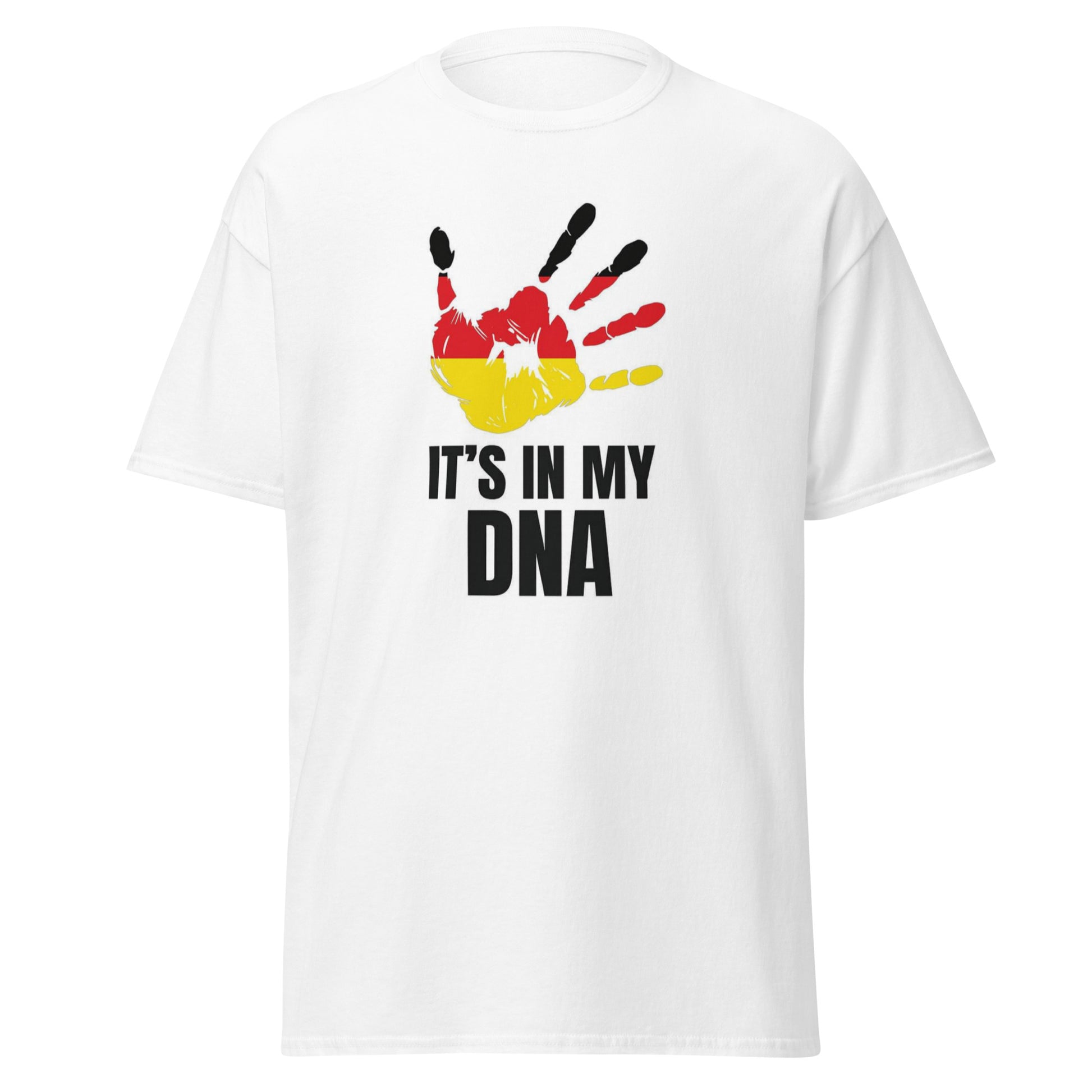 Show your pride for Germany with this stylish Celebrating Pride World Wide T-Shirt. Featuring the text "IT'S IN MY DNA" and an image of a hand in Germany's national colors of black, red, and gold, this t-shirt is a perfect way to showcase your German heritage and national pride. Made with comfortable fabric and a modern fit, it's suitable for everyday wear or special occasions. Whether you're celebrating German culture, showing support for your national team, or simply expressing your love for your homeland, this t-shirt is a must-have addition to your wardrobe. Embrace your German roots and let the world know that your pride runs deep with this unique and eye-catching design.