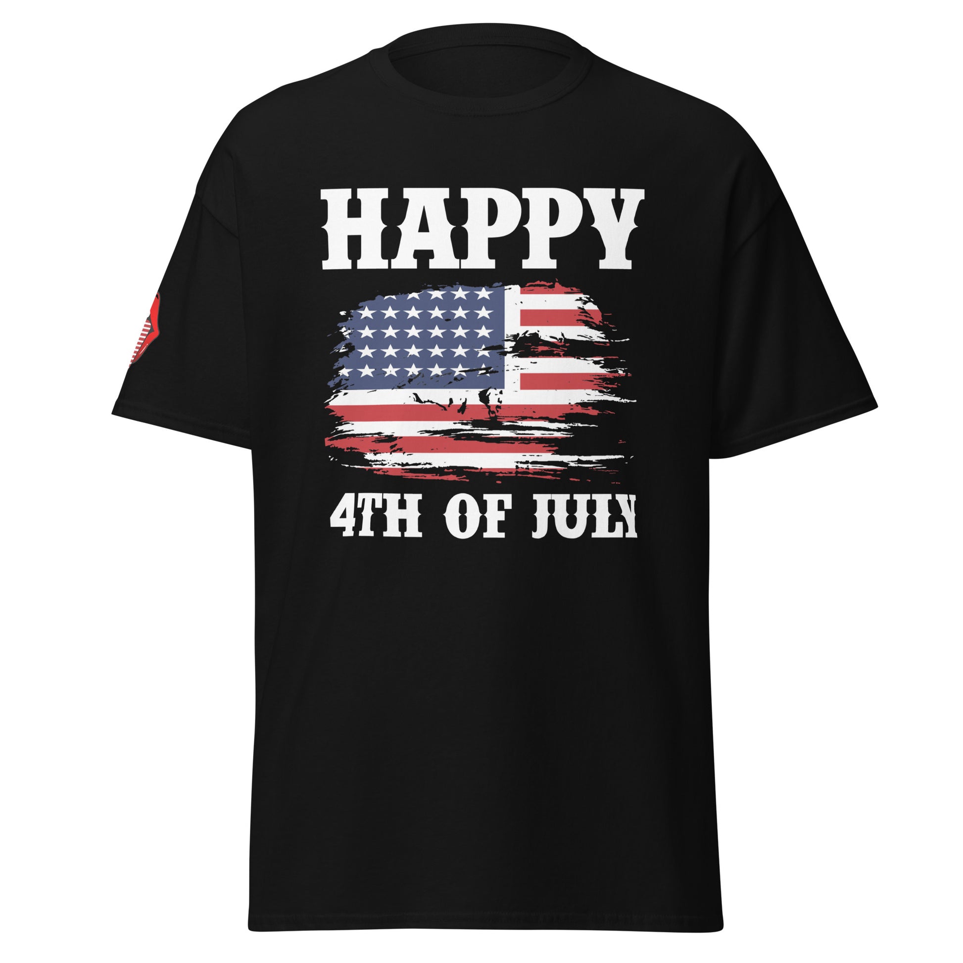 4th of July #19 "Happy 4TH OF JULY" w/ Patriotic Tongue on Right Shoulder Men's Classic Tee Short Sleeve