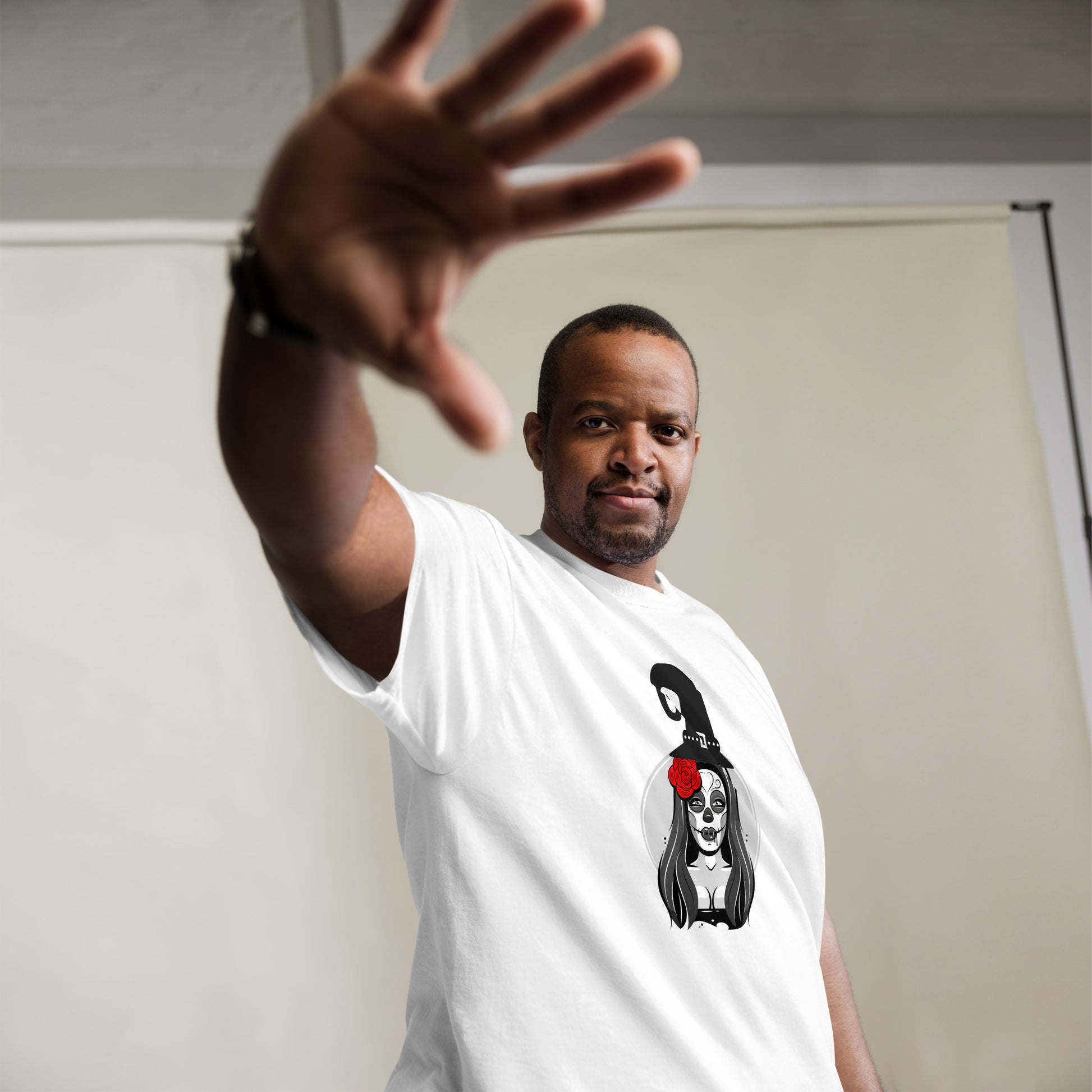 Embrace the enchanting spirit of Halloween with our captivating Alluring Witch-themed t-shirt. This bewitching design features the image of an attractive witch, exuding an air of allure and mystery. With her flowing robes, pointed hat, and broomstick, she embodies the essence of this magical holiday. Perfect for Halloween parties, trick-or-treating, or simply embracing the spooky season, this t-shirt will make a stylish statement. Crafted with care from high-quality materials, it offers a comfortable fit and long-lasting durability. The captivating design and intricate details of the witch create an eye-catching visual that will surely turn heads and spark conversations. Whether you're a fan of witchcraft, fascinated by the supernatural, or simply love the mystical ambiance of Halloween, this t-shirt is a must-have addition to your wardrobe. Embrace the spirit of Halloween and let your inner witch shine with our mesmerizing witch-themed t-shirt.