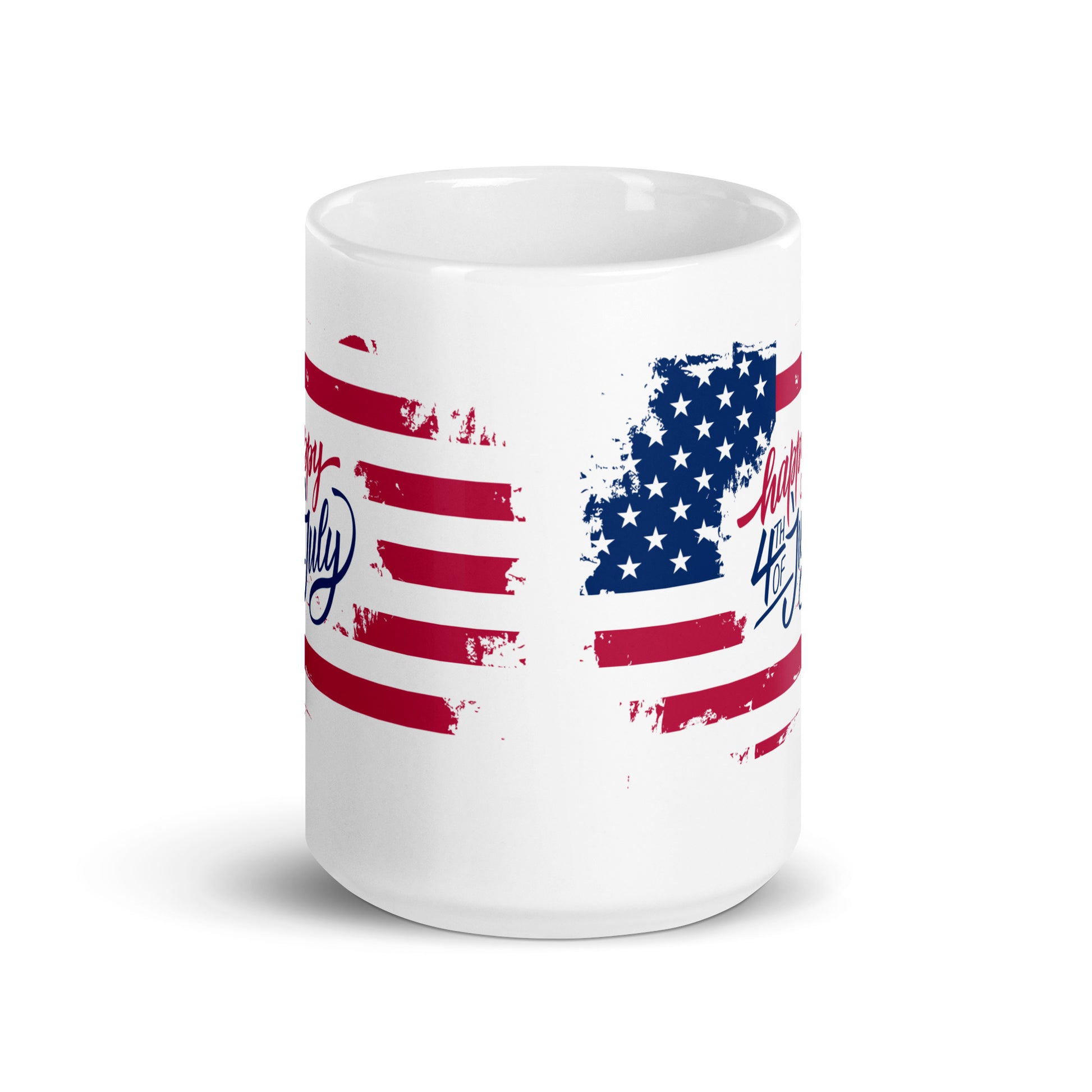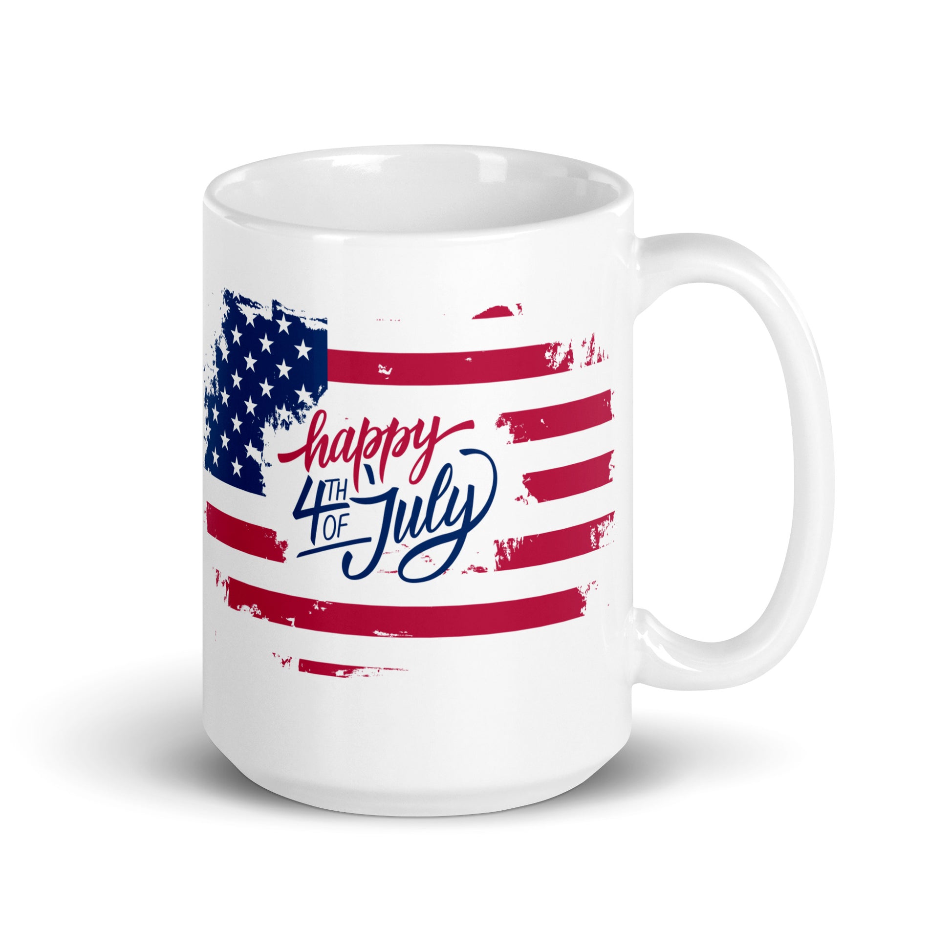 Celebrate Independence Day in style with this patriotic "4th of July" mug. Featuring a festive design with red, white, and blue colors, stars, and stripes, this mug is perfect for sipping your favorite beverage during your backyard BBQ or while watching fireworks. Made with high-quality ceramic and a comfortable handle, this mug is both durable and stylish. Whether you're enjoying a hot cup of coffee or a refreshing iced tea, this mug will help you show off your American pride all year long. It's sturdy and glossy with a vivid print that'll withstand the microwave and dishwasher.