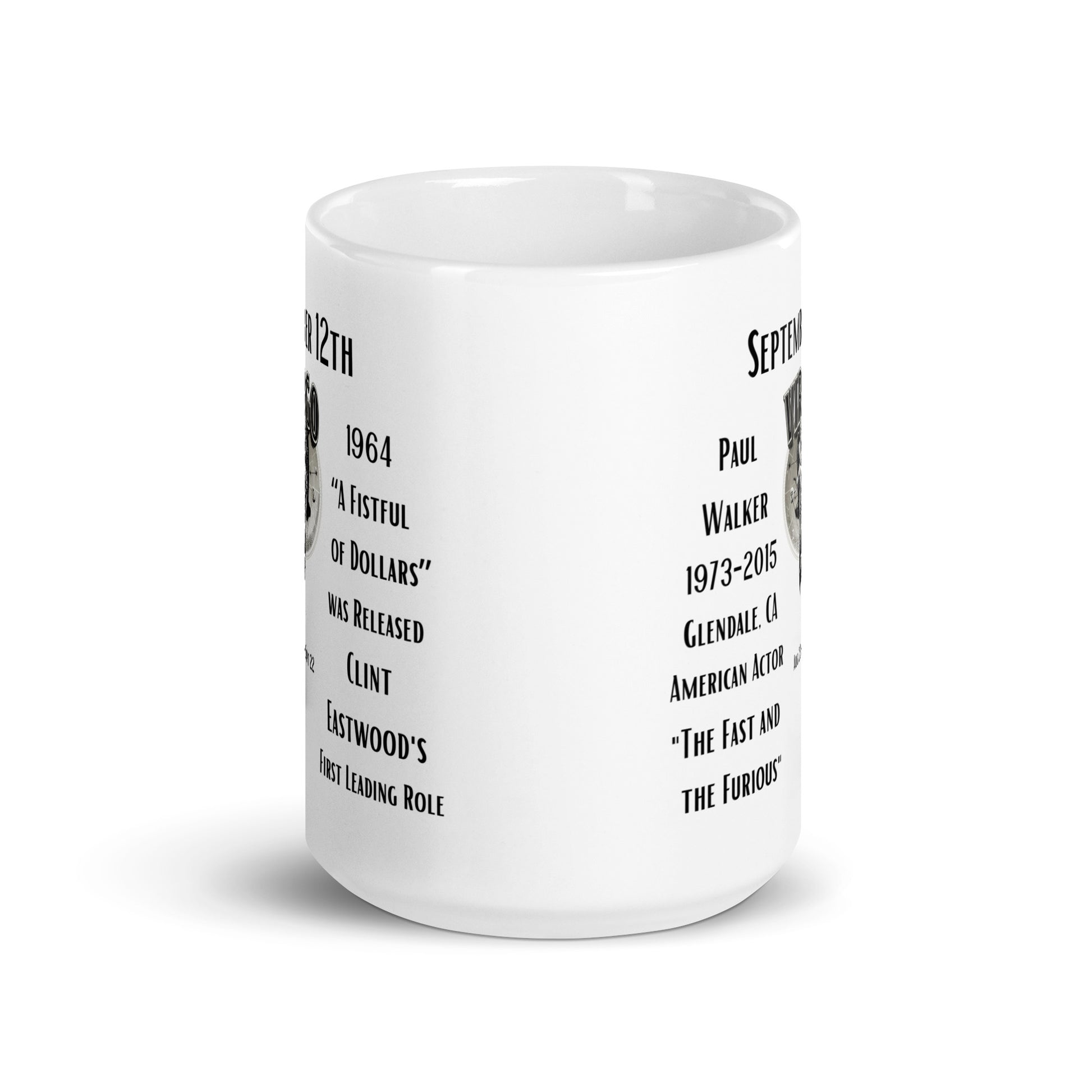 On This Day: Birthday Series - September 12th - (A) Paul Walker & Fistful of Dollars - White glossy mug