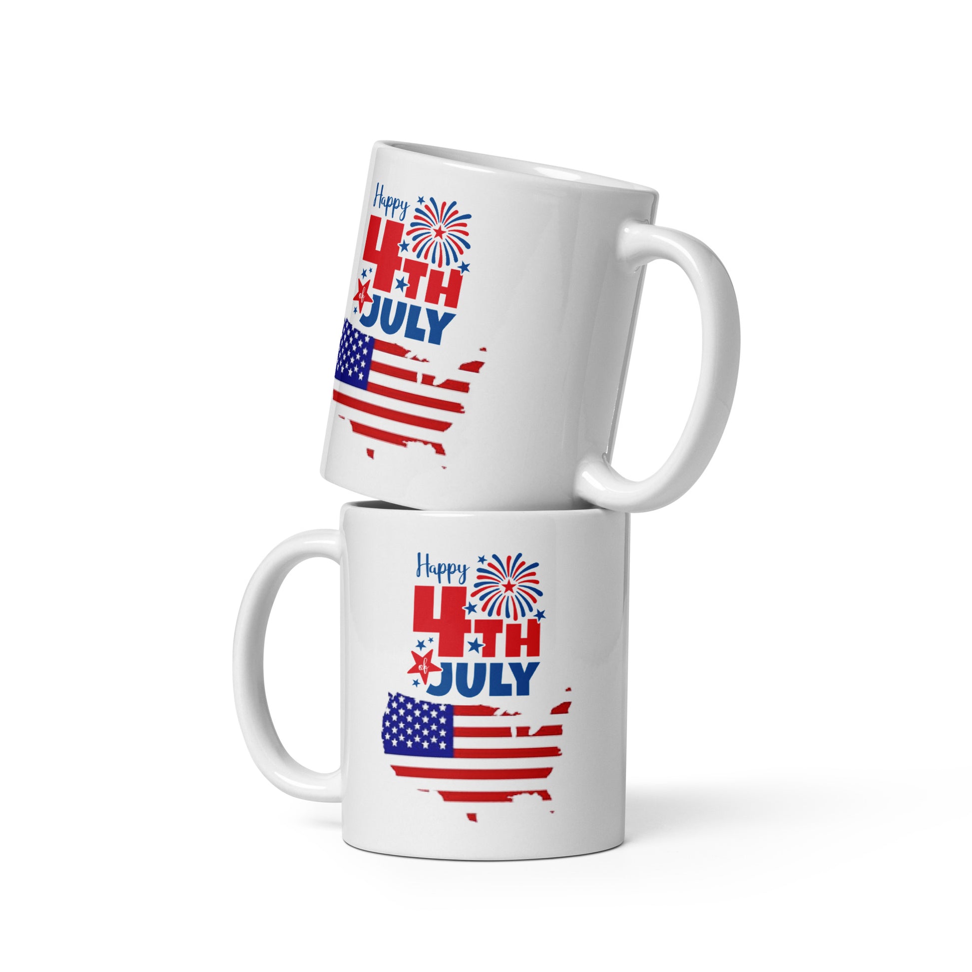 4th of July #05 "Happy 4th of July" White Glossy Mug