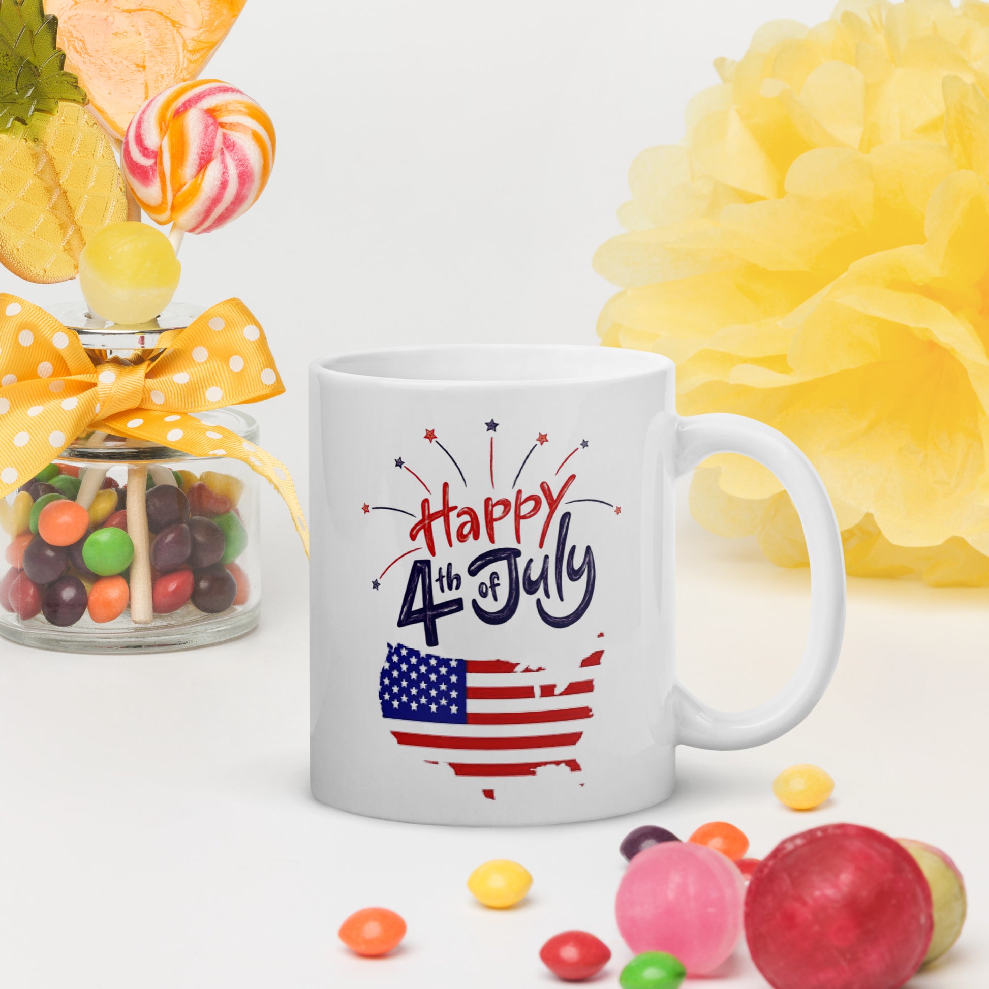 4th of July #06 "Happy 4th of July" - White Glossy Mug